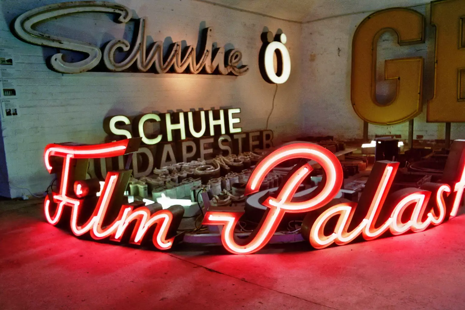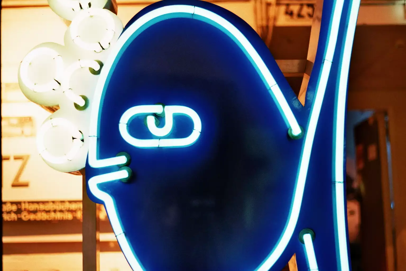 Despite all that, it’s fascinating to see the old fonts and typography. For some neon signs, it’s a trip back to my childhood - especially the Zierfische neon sign that once hung at Frankfurter Tor. The font is based on the handwriting of the script and advertising painter Manfred Gensicke, who also developed the sign2. I saw it often and really liked it, especially in the evenings. In 2009, the ornamental fish shop closed and the neon sign was removed. The Buchstabenmuseum e. V. acted quickly and saved it. It feels good to see it still shining