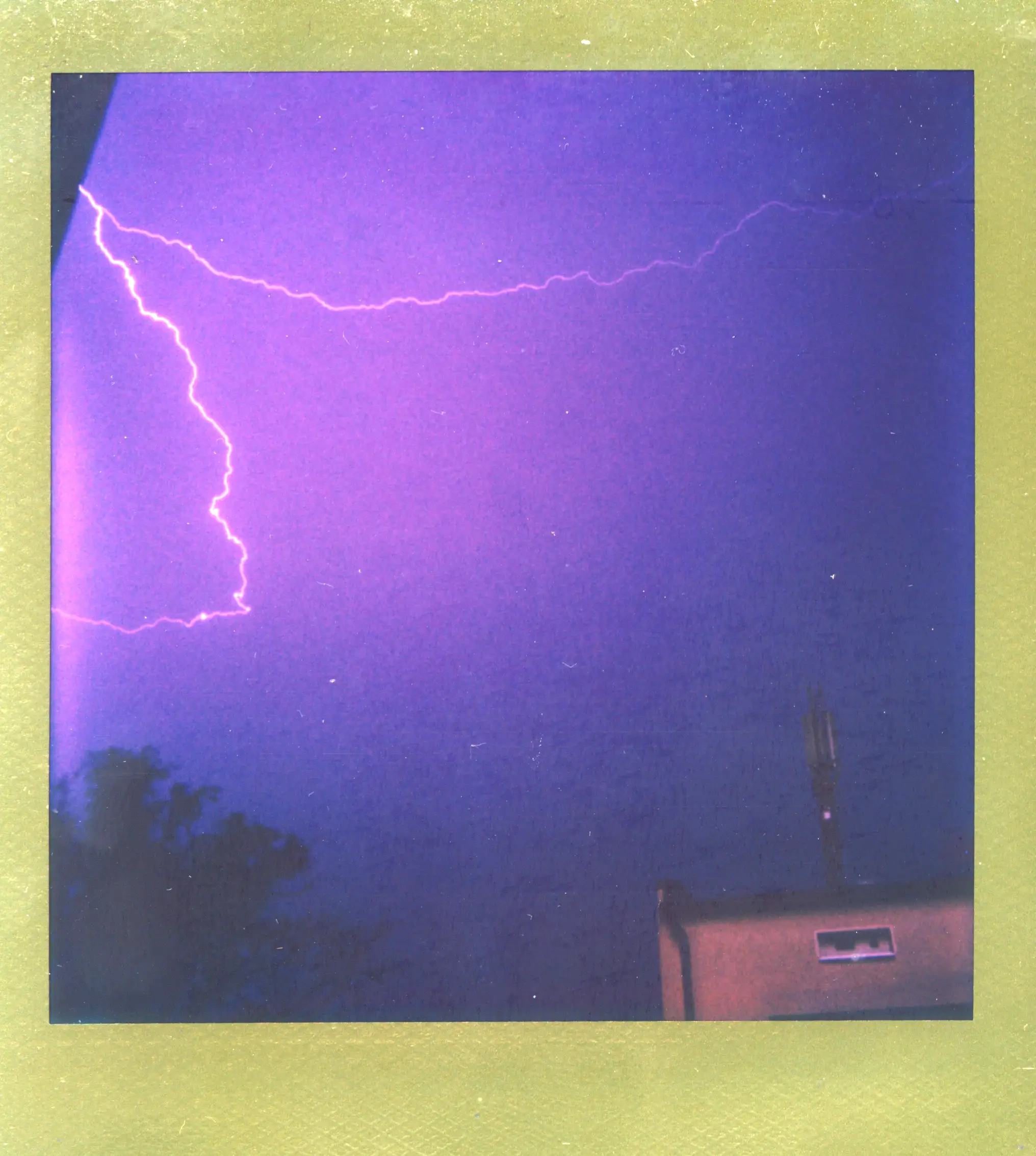With the recent storms, I tried to catch a lightning bolt on film - something I’ve always wanted to attempt. There was no real plan or guide behind it, just a lot of trial and error to get a feel for what works with a Polaroid and what doesn’t (and to be fair, I don’t plan on becoming a full-time Polaroid storm chaser). It’s a bit of a dance with exposure settings and timing, thanks to the unpredictability of both the storm and the camera.