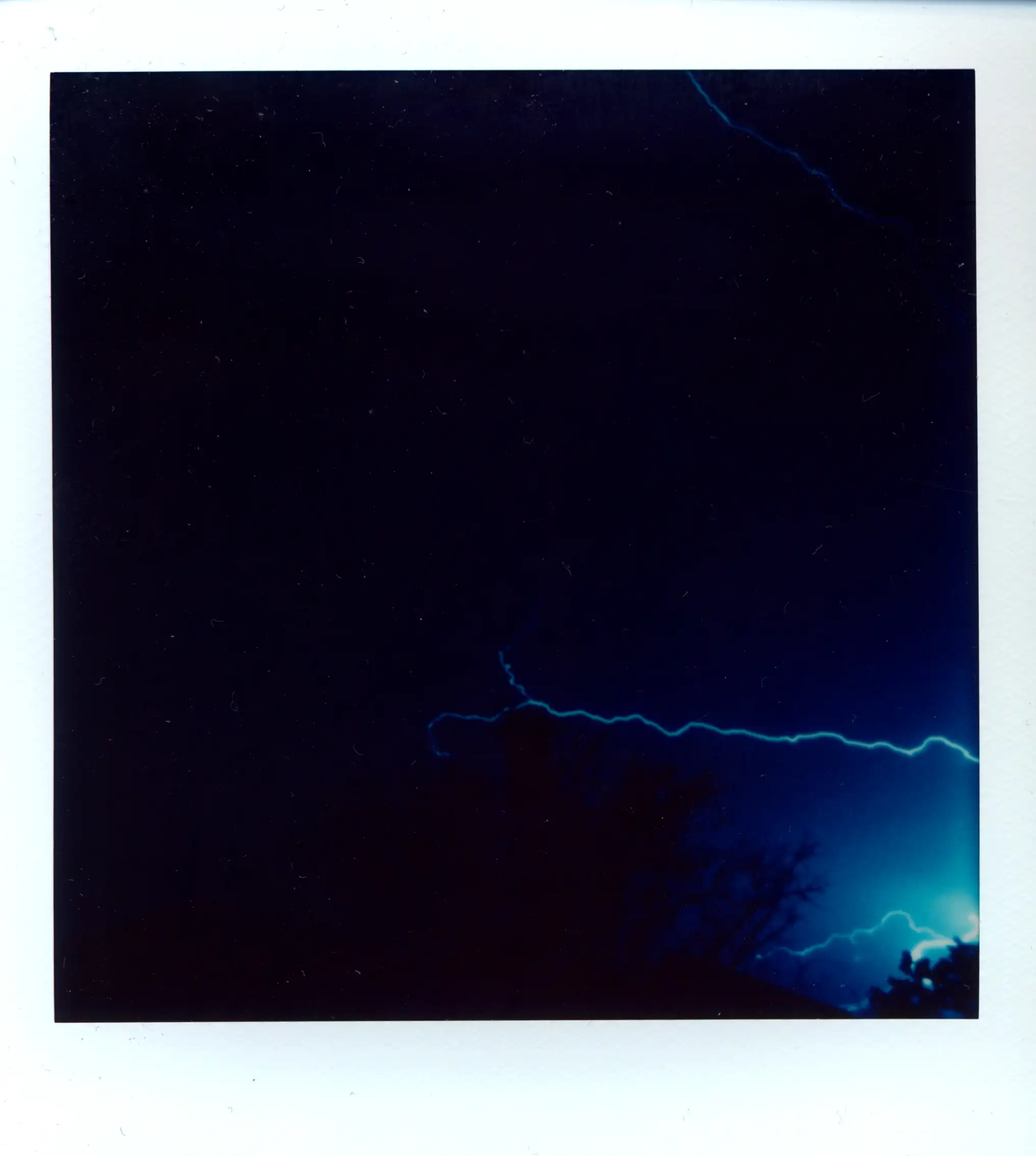 Woke up in the middle of the night to heavy rain and thunder. Spontaneously, I decided to try my luck again at catching some lightning bolts on Polaroid. This time, I had the distinct feeling the gods were mocking me. There were some really beautiful lightning strikes - just barely out of frame - or so many at once that the picture ended up completely overexposed.