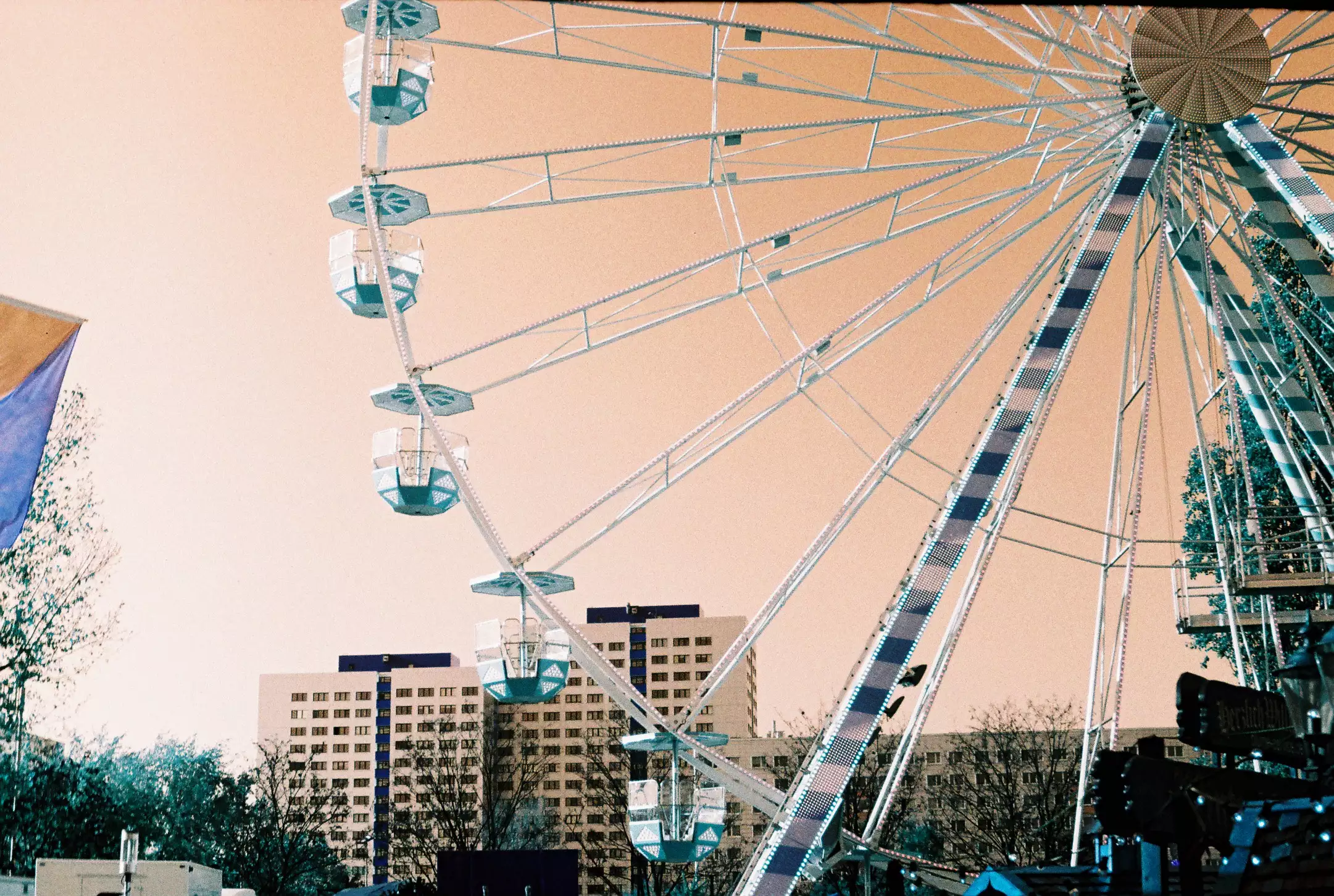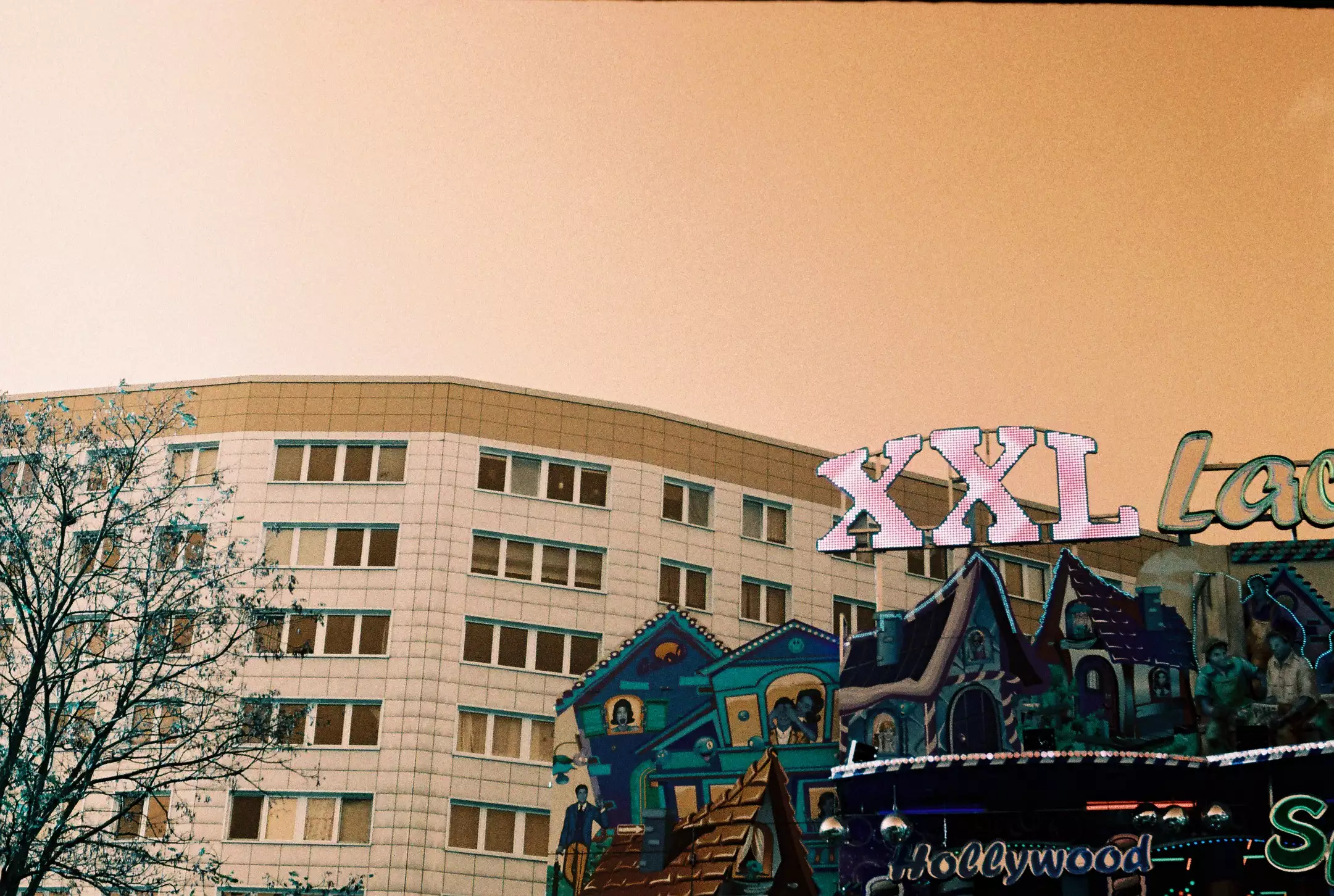 At least the spectacle is over by 9pm, and the lights vanish again. It’s a strange scene, and I took the opportunity to snap some photos of the fair set between the Plattenbauten.